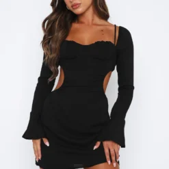 Please Hold Long Sleeve Mini Dress Black